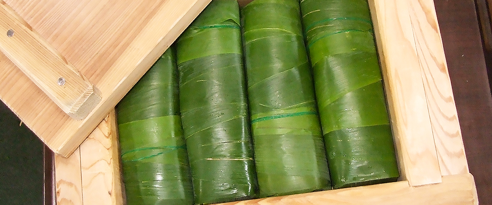 まるあい寿司本舗の「早なれずし」は、国産鯖と和歌山産のお米を使用、お米の味付けにも工夫をし、鯖は早なれずしに合うようにブレンドされた「酢」でしめ、アセ(暖竹)の葉で何重にも包み程よく発酵させています。